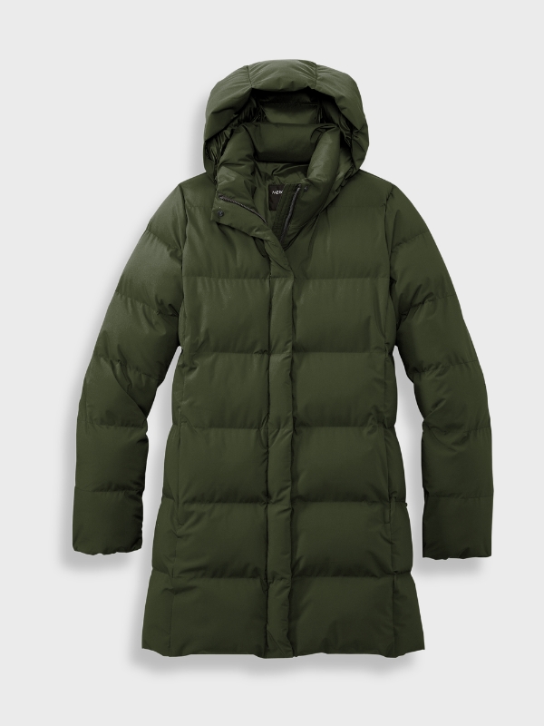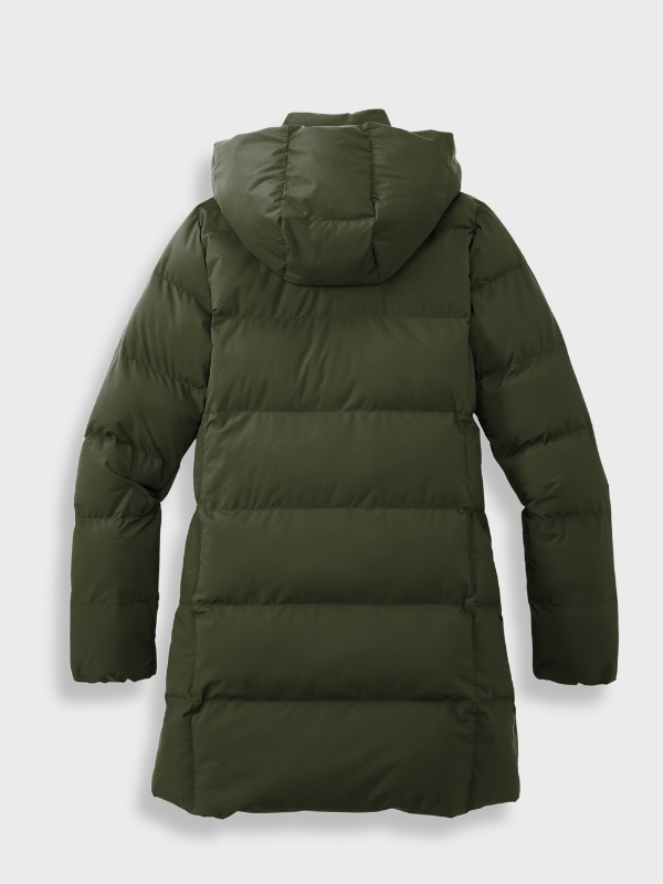 dependable warmth and transitional style for downtown or outof-town. The DWR finish sheds moisture while the blown-in